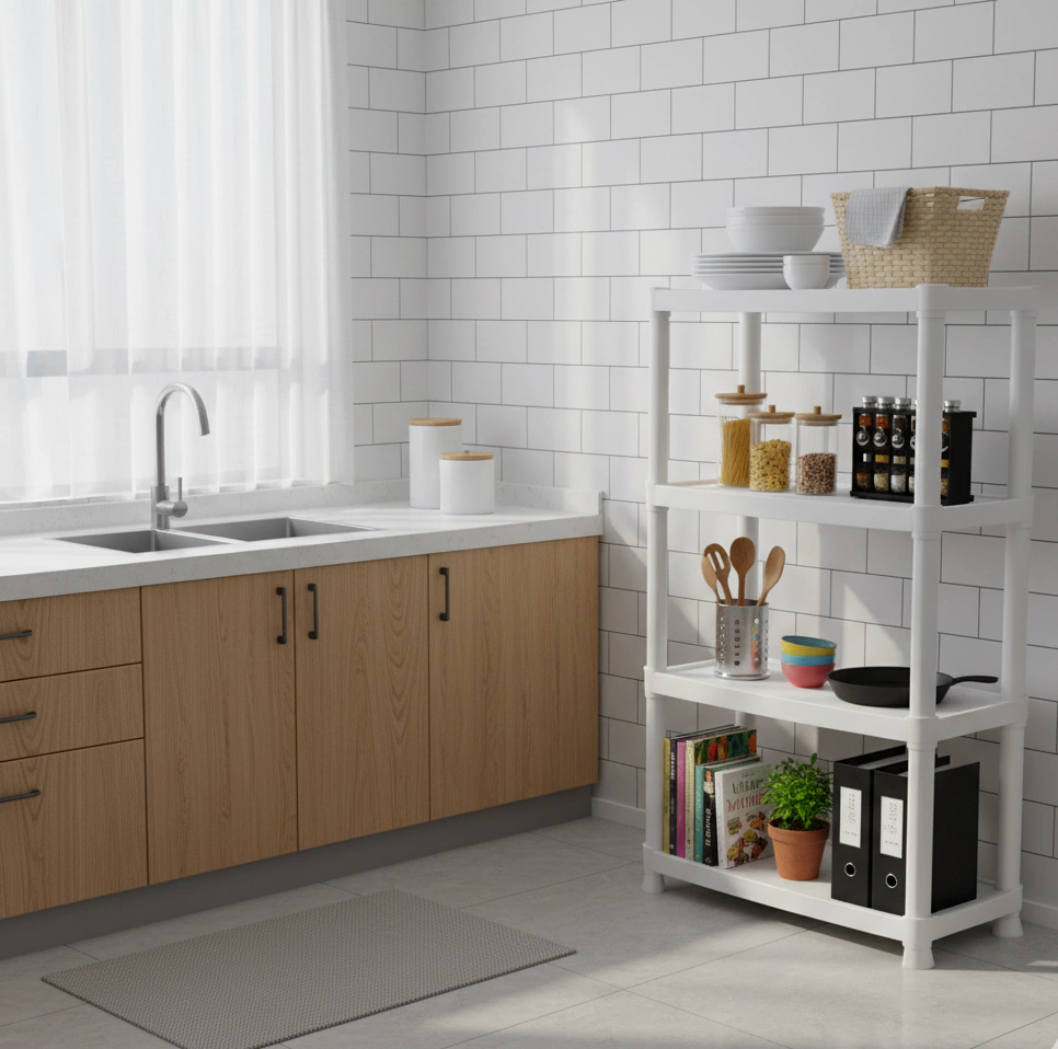 Organiza tus espacios de manera práctica con este rack mediano de 4 niveles, ideal para almacenar herramientas, productos de limpieza, artículos de cocina, garaje u oficina. Fabricado en plástico de alta resistencia, soporta peso sin deformarse y es fácil de limpiar. Su diseño compacto y funcional permite un montaje rápido sin necesidad de herramientas.