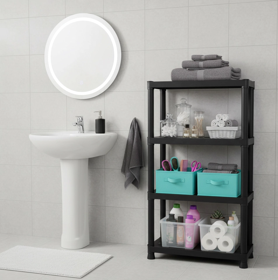 Organiza tus espacios de manera práctica con este rack mediano de 4 niveles, ideal para almacenar herramientas, productos de limpieza, artículos de cocina, garaje u oficina. Fabricado en plástico de alta resistencia, soporta peso sin deformarse y es fácil de limpiar. Su diseño compacto y funcional permite un montaje rápido sin necesidad de herramientas.