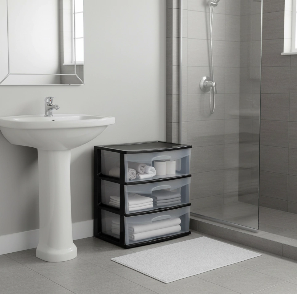 Organiza tu espacio con esta práctica cajonera de tres cajones en color negro, ideal para el hogar o la oficina. Fabricada en plástico resistente, su diseño moderno y funcional se adapta a cualquier ambiente. Cada cajón es amplio y profundo, perfecto para almacenar ropa, documentos, accesorios u otros objetos. Su estructura transparente permite visualizar el contenido sin necesidad de abrir los cajones, facilitando el acceso y la organización diaria. Una solución versátil y eficiente para mantener todo en orden.